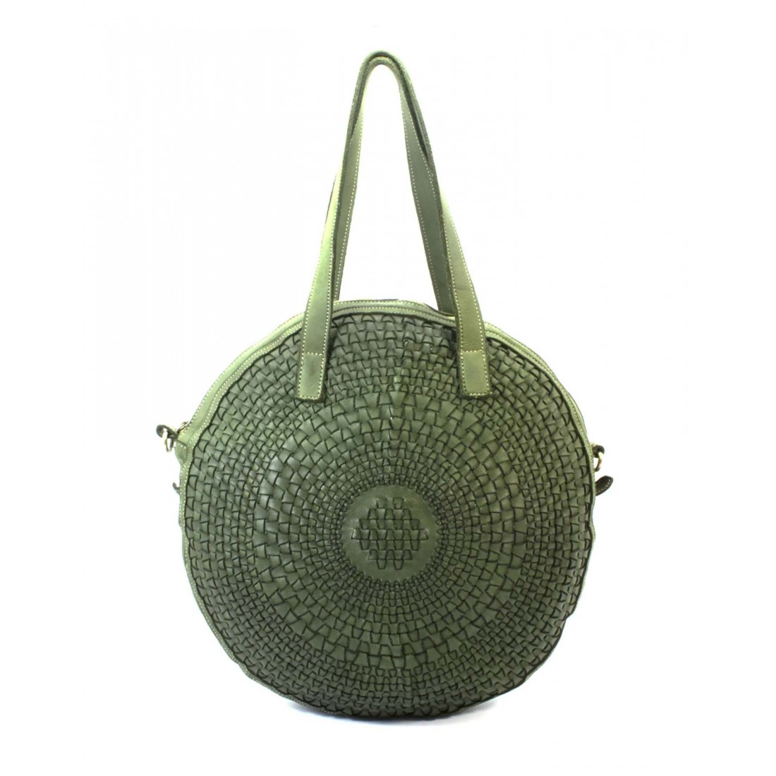Eine geräumige Handtasche in ovaler Form und Farbe, die sich leicht an den täglichen Stil anpassen lässt. Wenn Sie auf der Suche nach einer großen, originellen Ledertasche sind, die auch als Schultertasche oder Handtasche verwendet werden kann, sollten Sie sich dieses Modell ansehen. Der Innenraum ist perfekt organisiert. Die Handtasche verfügt über ein großes Fach mit Reißverschluss, ein Fach mit Reißverschluss und zwei offene Fächer. Zusätzlich abnehmbarer und verstellbarer Schulterriemen. Geeignet für A4-Format.